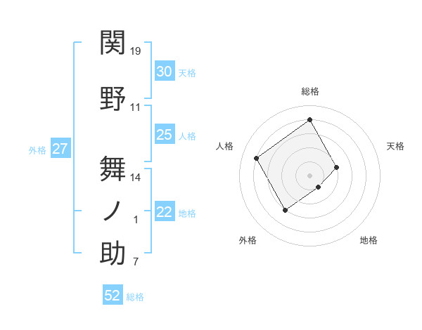 関野 舞ノ助さんの総格は52画の4点!