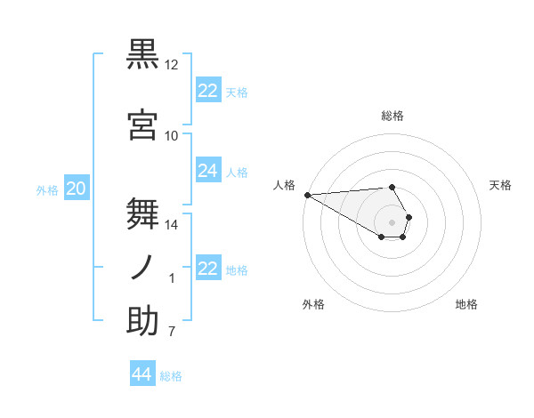 黒宮 舞ノ助さんを姓名の画数から五運を鑑定