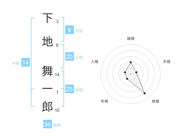 下地 舞一郎さんを姓名の画数から五運を鑑定