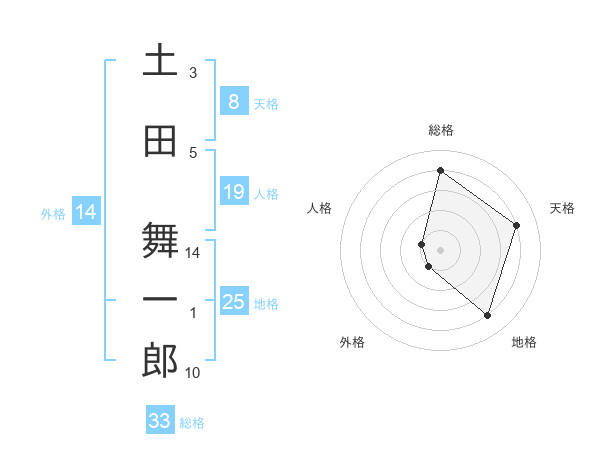 土田 舞一郎さんを姓名の画数から五運を鑑定