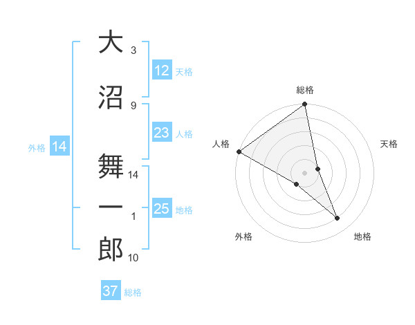 大沼 舞一郎さんの総格は37画の5点!