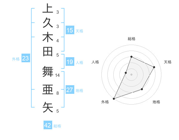 上久木田 舞亜矢さんを姓名の画数から五運を鑑定