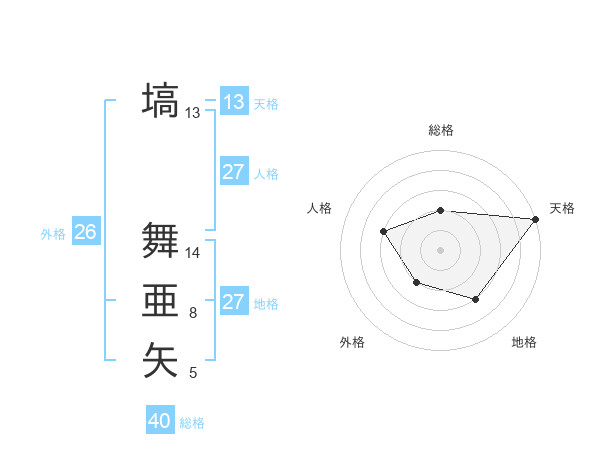 塙 舞亜矢さんの天格は13画の5点!