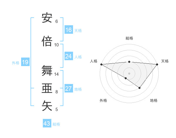 安倍 舞亜矢さんの天格は16画の5点!