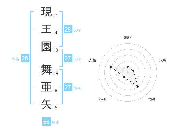 現王園 舞亜矢さんの総格は55画の1点!