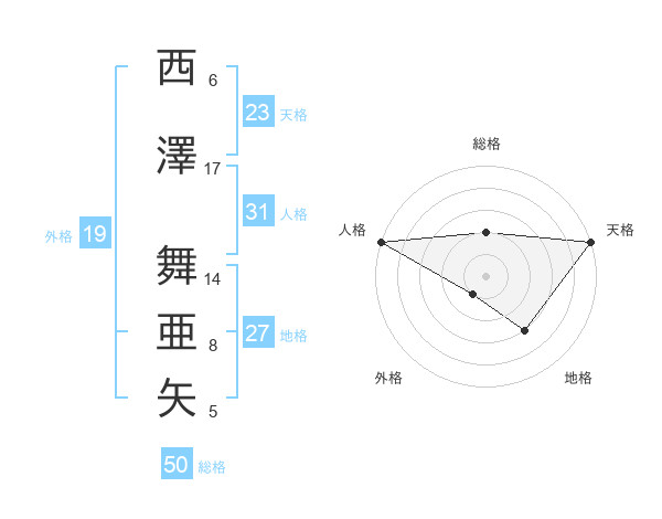 西澤 舞亜矢さんを姓名の画数から五運を鑑定