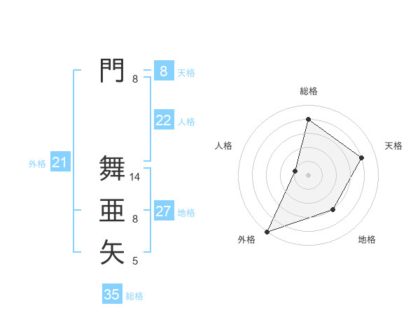 門 舞亜矢さんの天格は8画の4点!