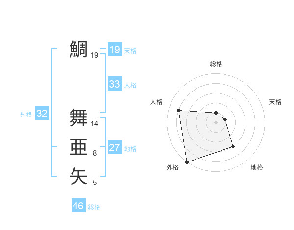 鯛 舞亜矢さんの外格は32画の5点!