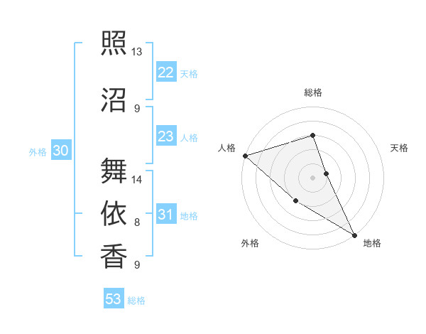 照沼 舞依香さんを姓名の画数から五運を鑑定