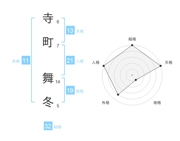 寺町 舞冬さんを姓名の画数から五運を鑑定