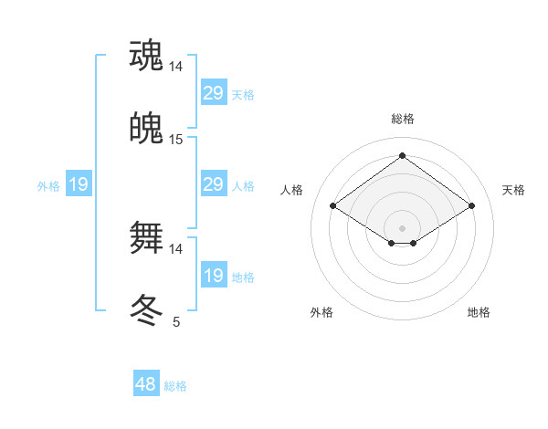 魂魄 舞冬さんを姓名の画数から五運を鑑定