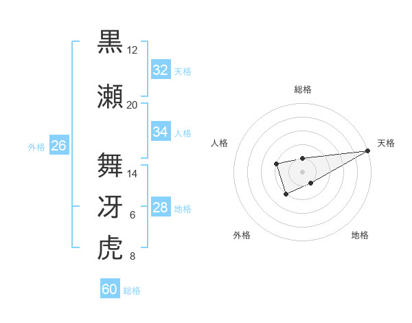黒瀬 舞冴虎さんの天格は32画の5点!