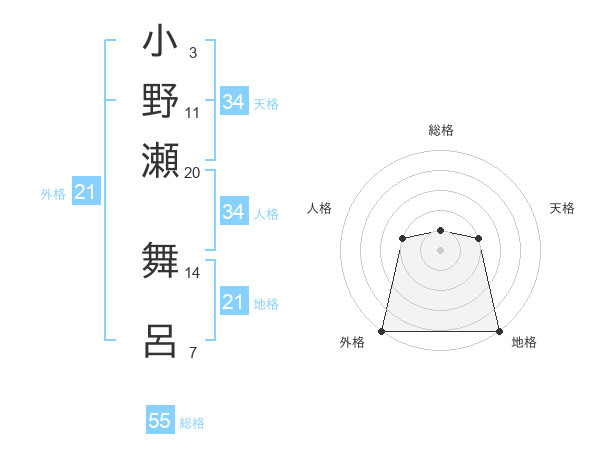小野瀬 舞呂さんの総格は55画の1点