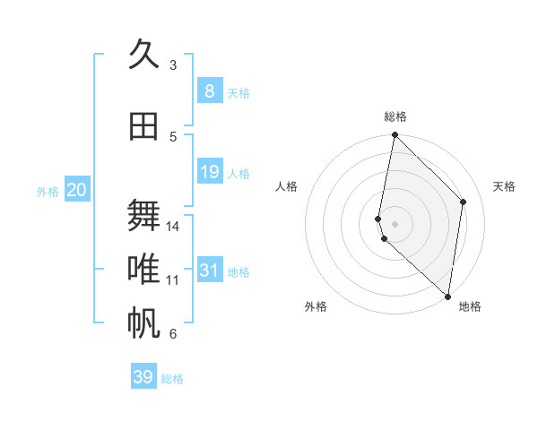 久田 舞唯帆さんを姓名の画数から五運を鑑定