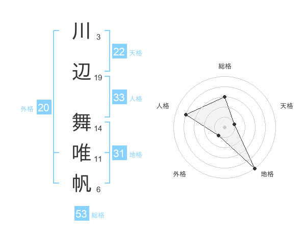 川辺 舞唯帆さんを姓名の画数から五運を鑑定