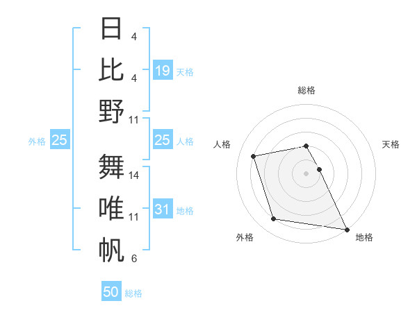日比野 舞唯帆さんを姓名の画数から五運を鑑定