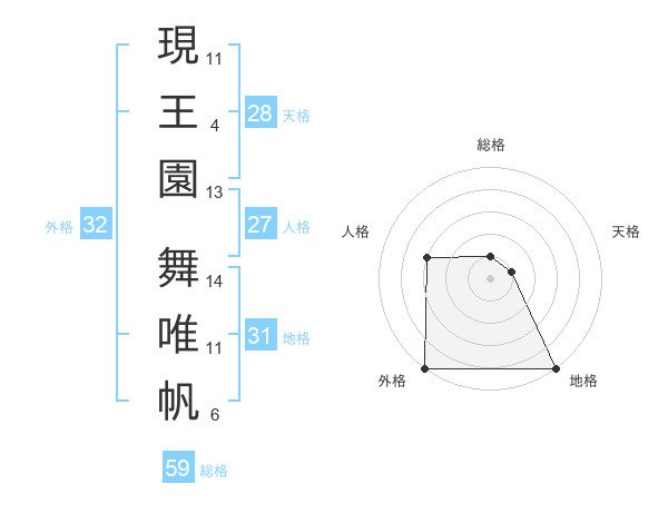 現王園 舞唯帆さんを姓名の画数から五運を鑑定