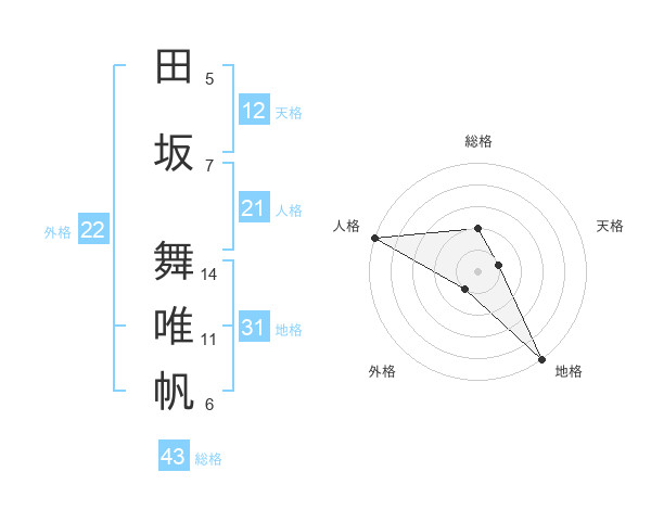 田坂 舞唯帆さんの人格は21画の5点!