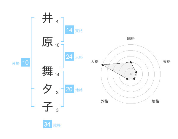 井原 舞夕子さんを姓名の画数から五運を鑑定