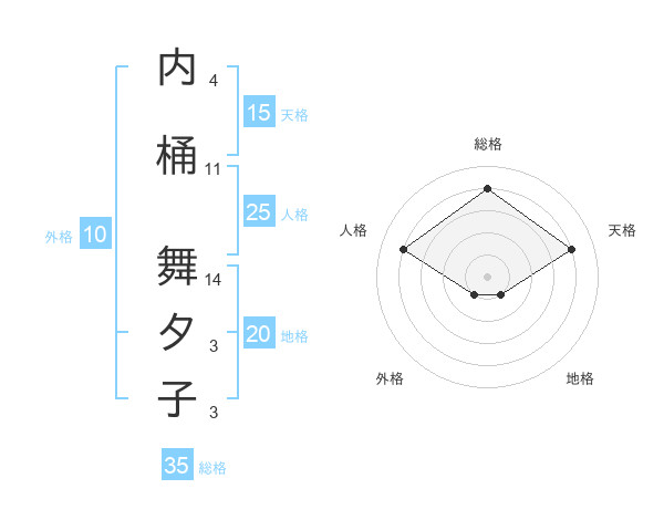 内桶 舞夕子さんを姓名の画数から五運を鑑定