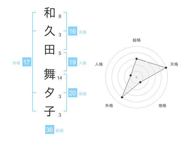 和久田 舞夕子さんを姓名の画数から五運を鑑定