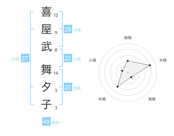 喜屋武 舞夕子さんを姓名の画数から五運を鑑定