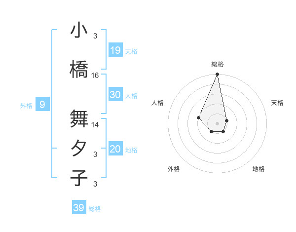 小橋 舞夕子さんを姓名の画数から五運を鑑定