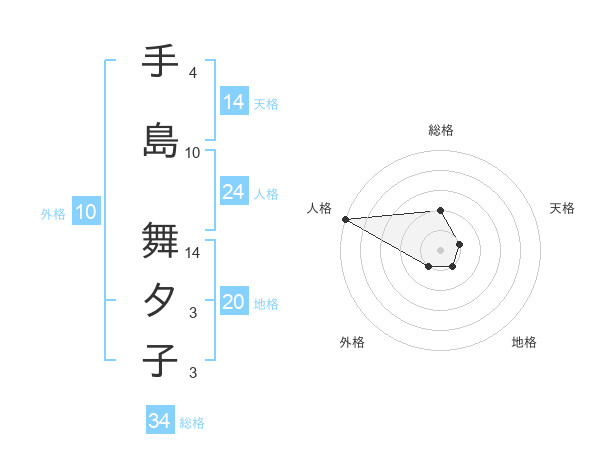 手島 舞夕子さんを姓名の画数から五運を鑑定