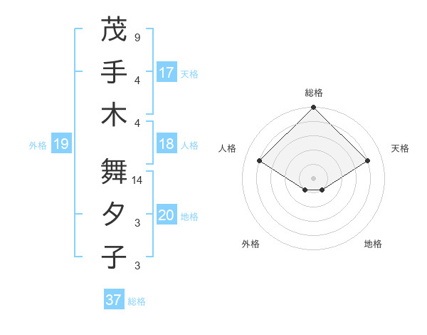 茂手木 舞夕子さんの総格は37画の5点!