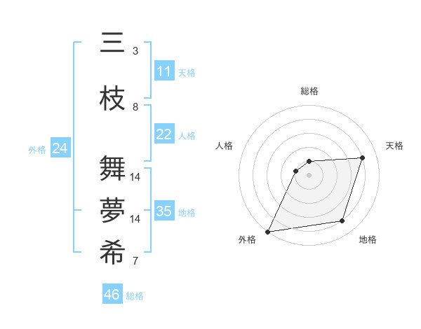 三枝 舞夢希さんを姓名の画数から五運を鑑定