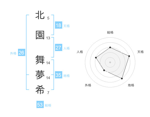 北園 舞夢希さんを姓名の画数から五運を鑑定