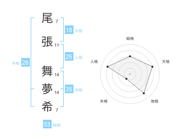 尾張 舞夢希さんの総格は53画の3点!