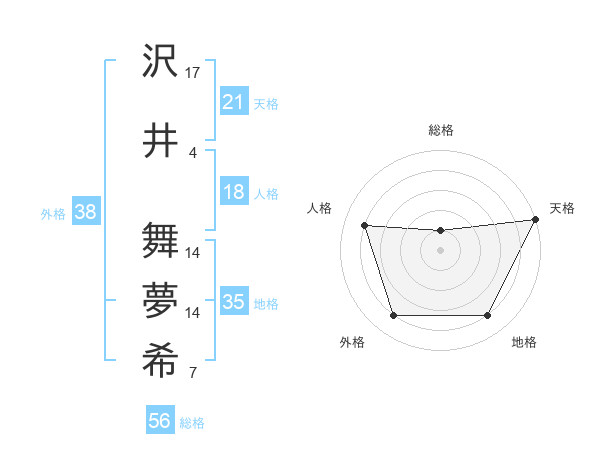 沢井 舞夢希さんを姓名の画数から五運を鑑定