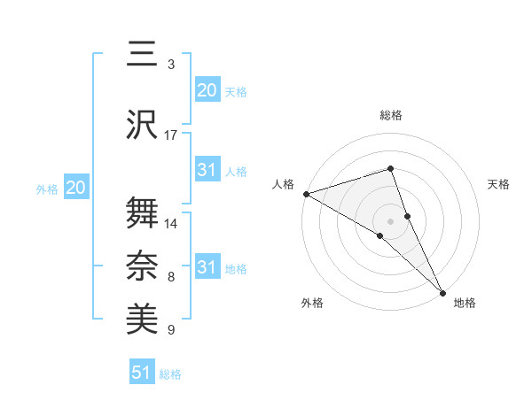 三沢 舞奈美さんを姓名の画数から五運を鑑定
