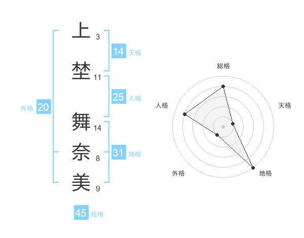 上埜 舞奈美さんの総格は45画の4点!