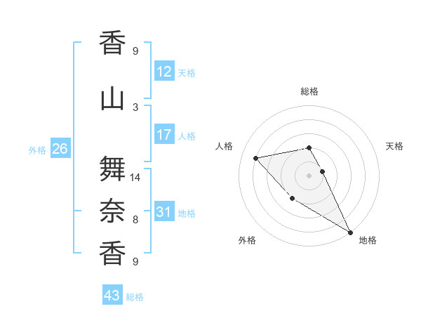 香山 舞奈香さんを姓名の画数から五運を鑑定