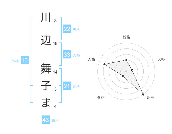川辺 舞子まさんを姓名の画数から五運を鑑定