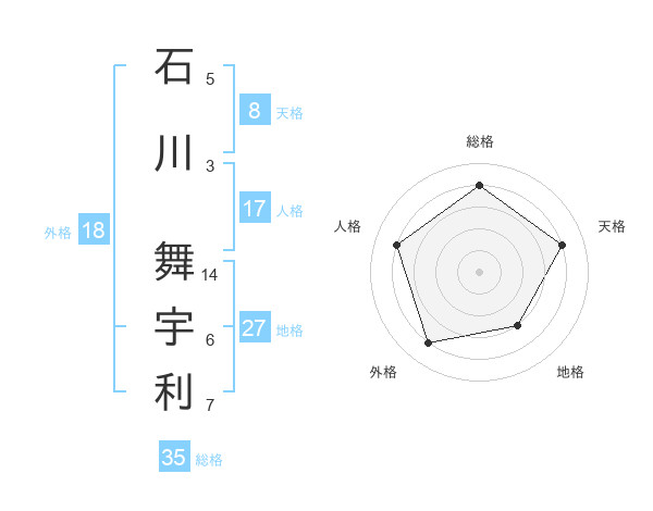 石川 舞宇利さんを姓名の画数から五運を鑑定