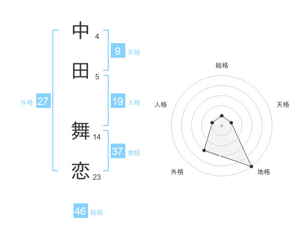 中田 舞恋さんを姓名の画数から五運を鑑定