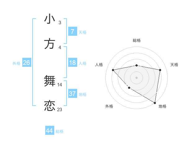 小方 舞恋さんの総格は44画の2点!