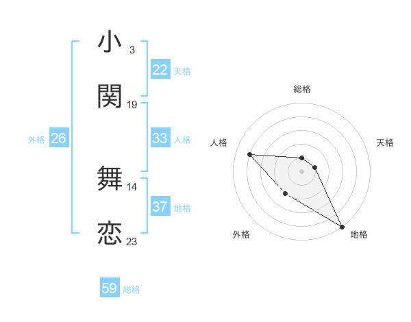 小関 舞恋さんの総格は59画の1点!