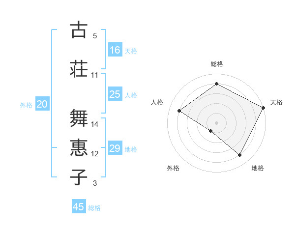 古荘 舞惠子さんの総格は45画の4点!