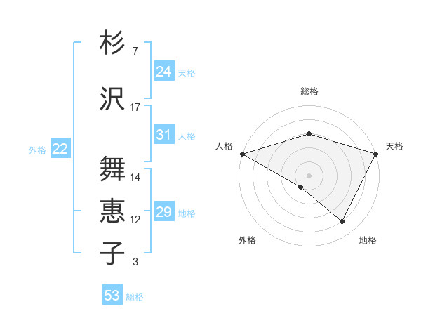 杉沢 舞惠子さんの総格は53画の3点!