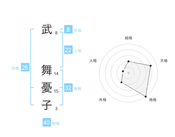 武 舞憂子さんを姓名の画数から五運を鑑定
