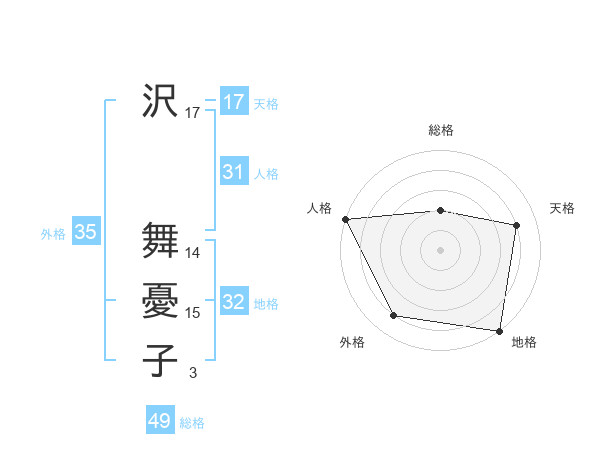 沢 舞憂子さんの人格は31画の5点!