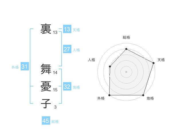 裏 舞憂子さんの総格は45画の4点!
