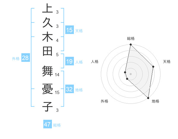 上久木田 舞憂子さんを姓名の画数から五運を鑑定