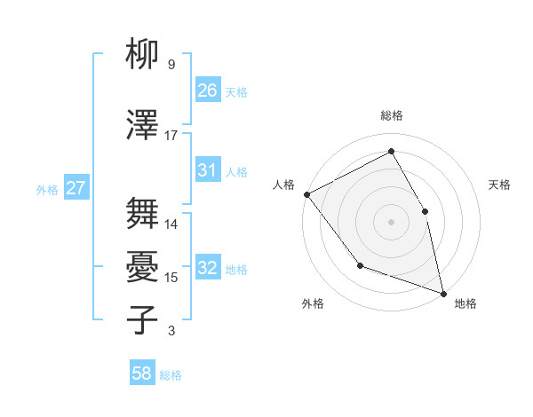 柳澤 舞憂子さんを姓名の画数から五運を鑑定