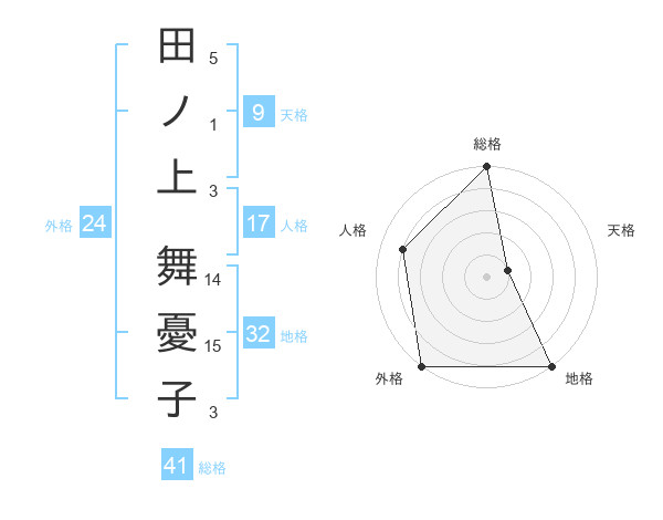 田ノ上 舞憂子さんを姓名の画数から五運を鑑定