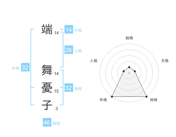 端 舞憂子さんの外格は32画の5点!